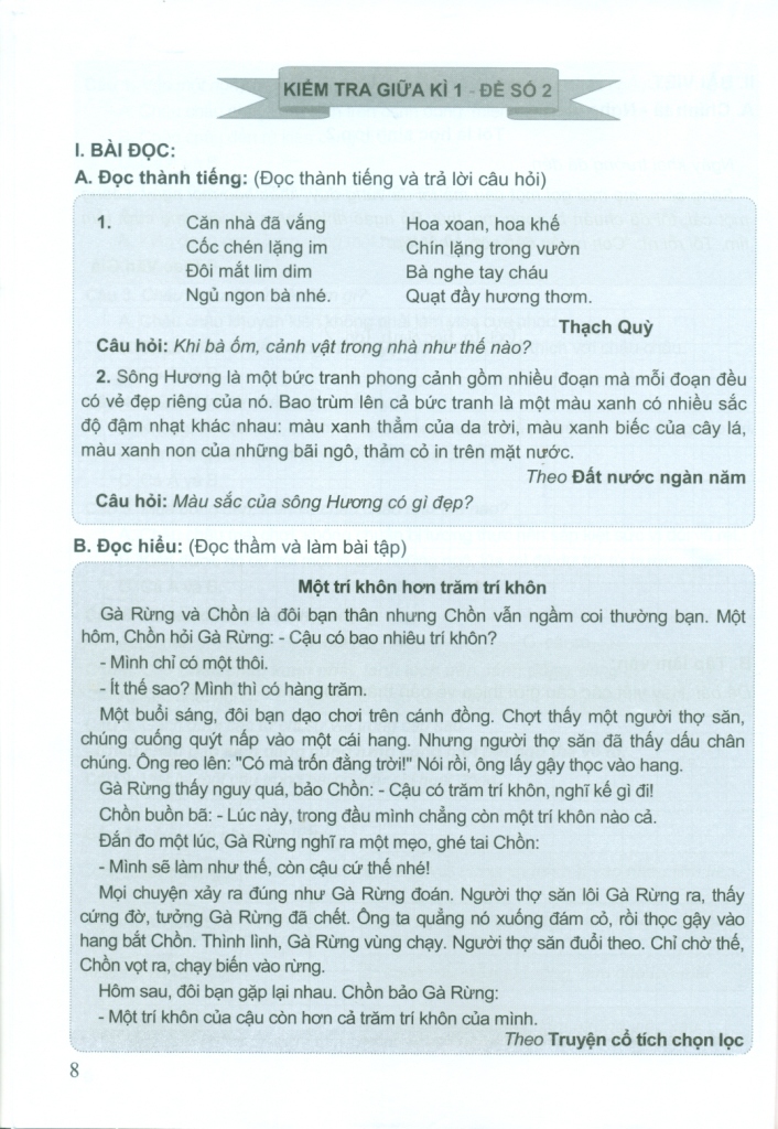 BỘ ĐỀ KIỂM TRA MÔN TIẾNG VIỆT LỚP 2 (Bám sát SGK Kết nối tri thức với cuộc sống)