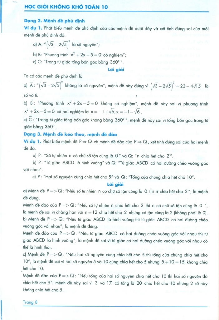HỌC GIỎI KHÔNG KHÓ TOÁN LỚP 10 (Biên soạn theo CTGDPT mới - Dùng chung cho các bộ SGK hiện hành)