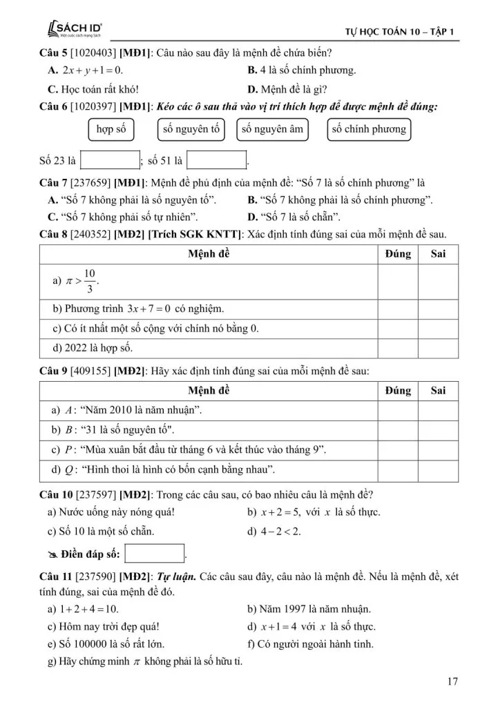 TỰ HỌC TOÁN LỚP 10 - TẬP 1 (Dùng chung cho các bộ SGK hiện hành)