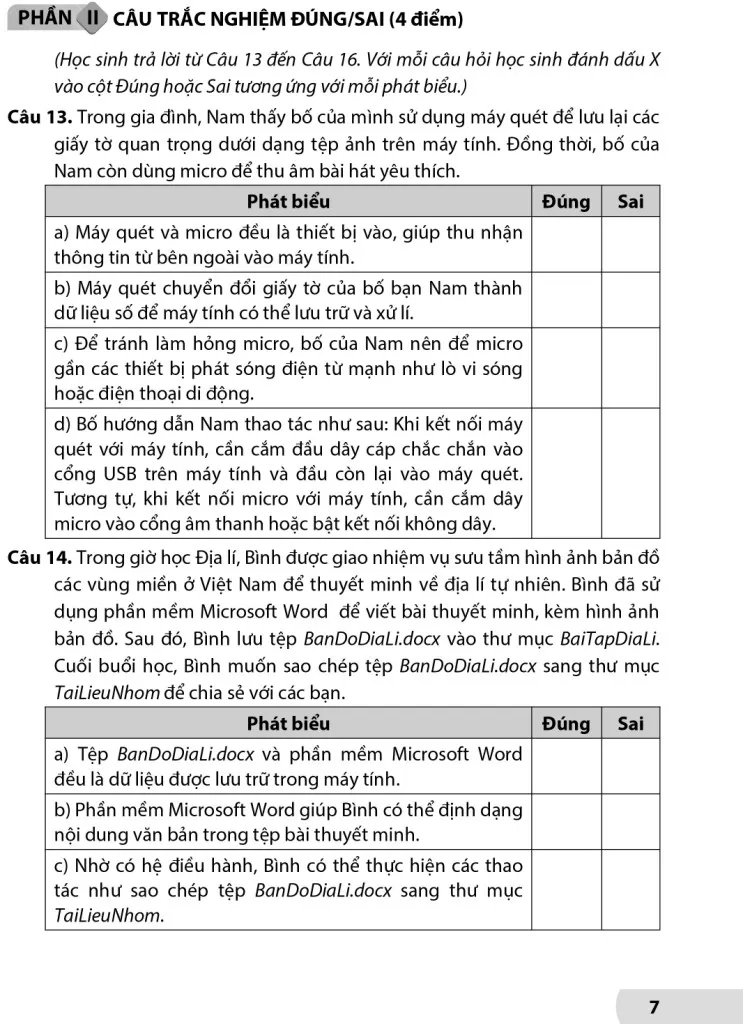 BỘ ĐỀ KIỂM TRA, ĐÁNH GIÁ TIN HỌC LỚP 7 (Theo chương trình GDPT 2018)